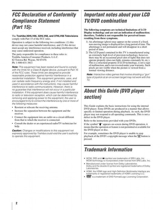 Toshiba 26HF66 J3W60321AEncov (88 pages) TV Operating Manual