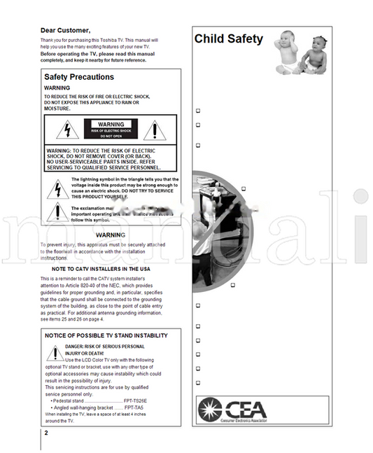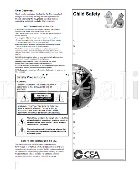 Toshiba 26HL67 32HL67 32HL67US TV Operating Manual