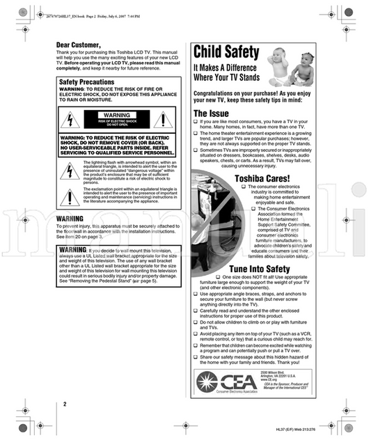 Toshiba 26HL67 32HL67 37HL67 TV Operating Manual