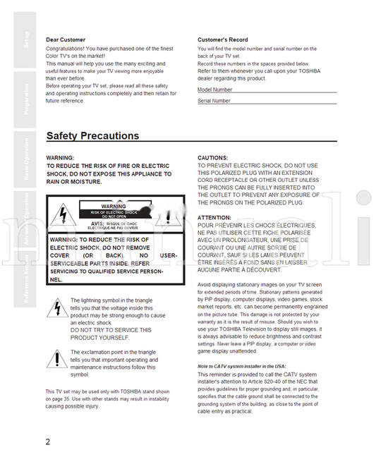 Toshiba 27AF41 32AF41 36AF41 (38 pages) TV Operating Manual