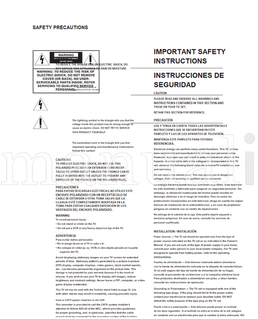 Toshiba 27A33 (32 pages) TV Operating Manual