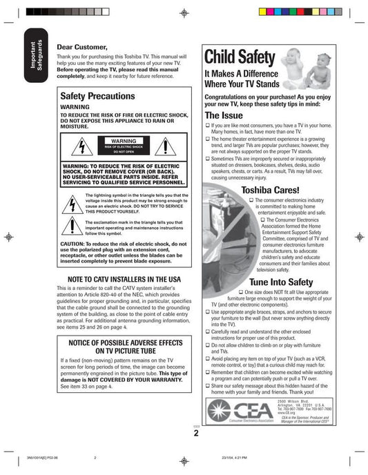 Toshiba 32A33 32A43 36A43 23565887A (36 pages) TV Operating Manual