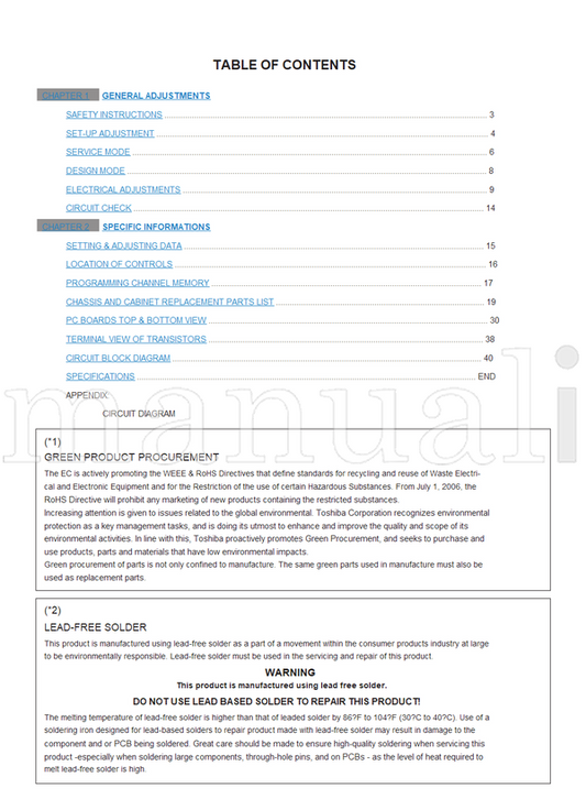 Toshiba 32A3030D (175 pages) TV Service Manual