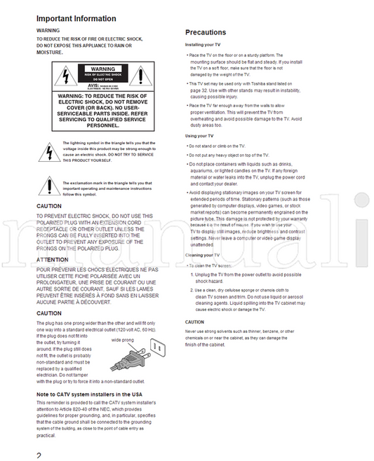 Toshiba 32AV600E 32AV600T 32AV600Y 32AV601E 32AV601T 37AV600E (36 pages) TV Operating Manual