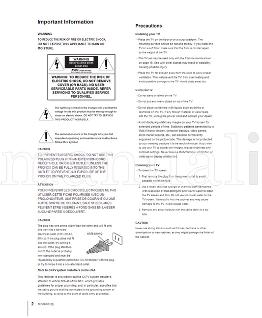 Toshiba 32AFX61 36AFX61 TV Operating Manual