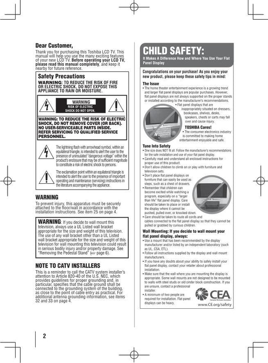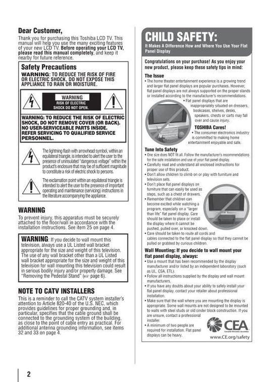 Toshiba 32DT2U 32DT2UL 40FT2U (59 pages) TV Operating Manual