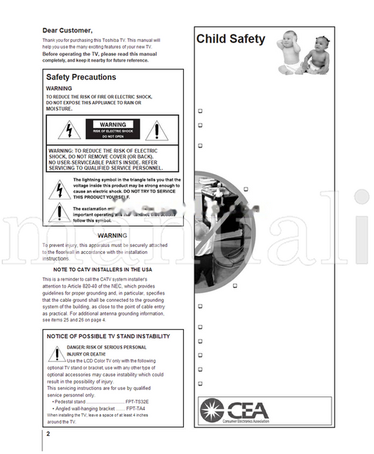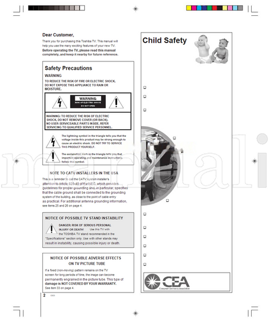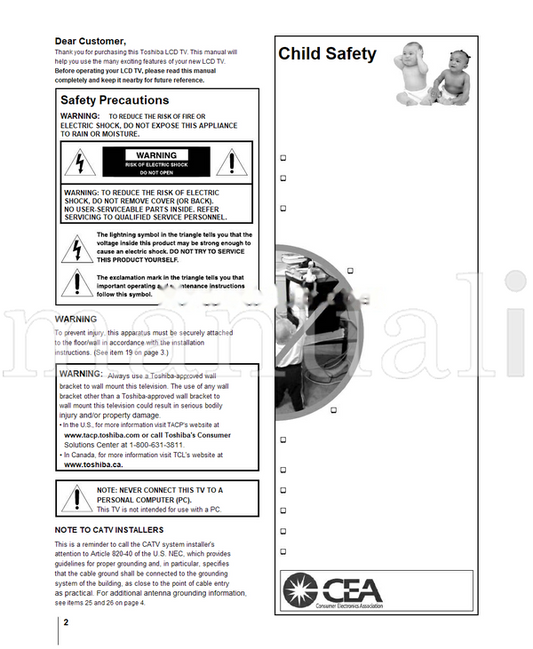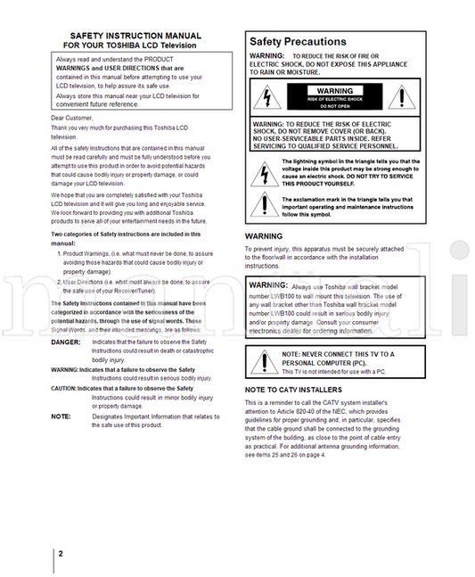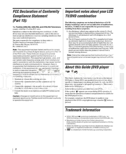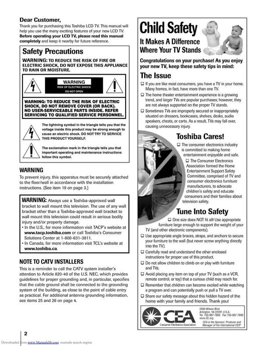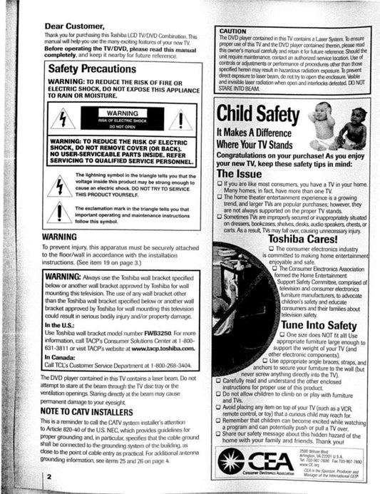 Toshiba 32HLX95 37HLX95 TV Operating Manual