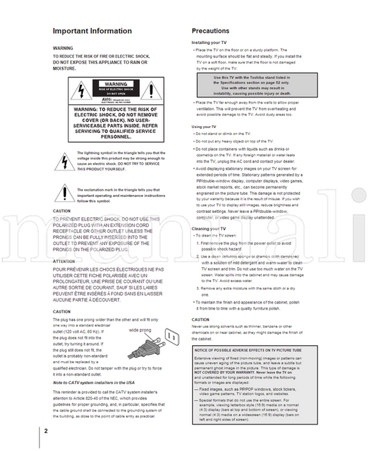 Toshiba 32HFX72 36HFX72 23565643 (58 pages) TV Operating Manual