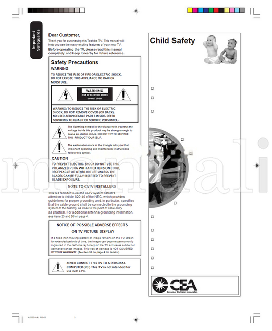 Toshiba 36A11 (44 pages) TV Operating Manual