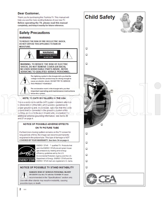 Toshiba 34HFX84 23566372 (68 pages) TV Operating Manual
