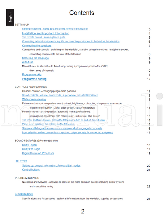 Toshiba 36ZP46 (168 pages) TV Operating Manual