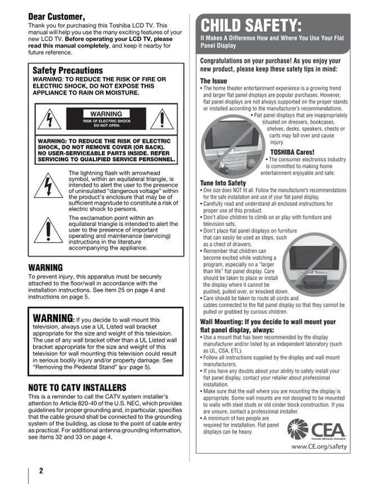 Toshiba 40SL412U 46SL412U 55SL412U 55S41U (62 pages) TV Operating Manual