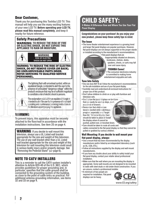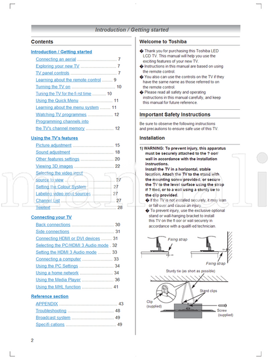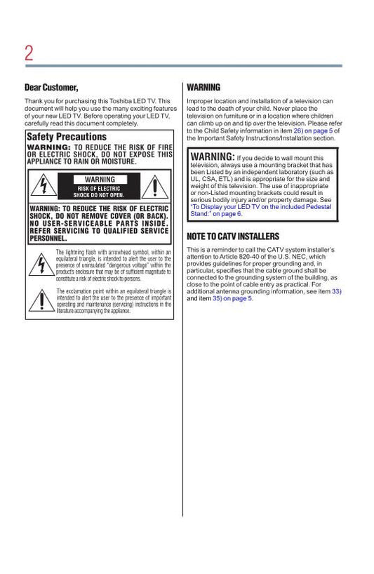 Toshiba 40L3400U 50L3400U TV Operating Manual