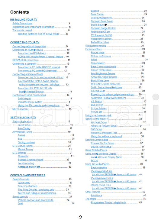 Toshiba 40TL20 46TL20 VX1A00229400 (52 pages) TV Operating Manual