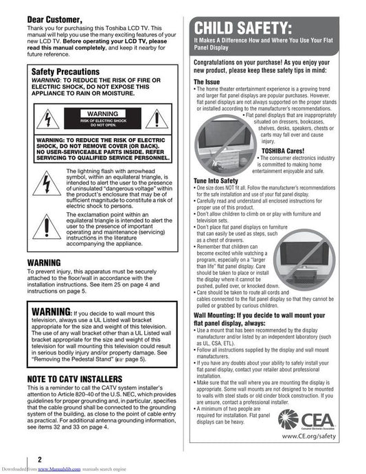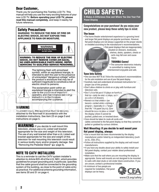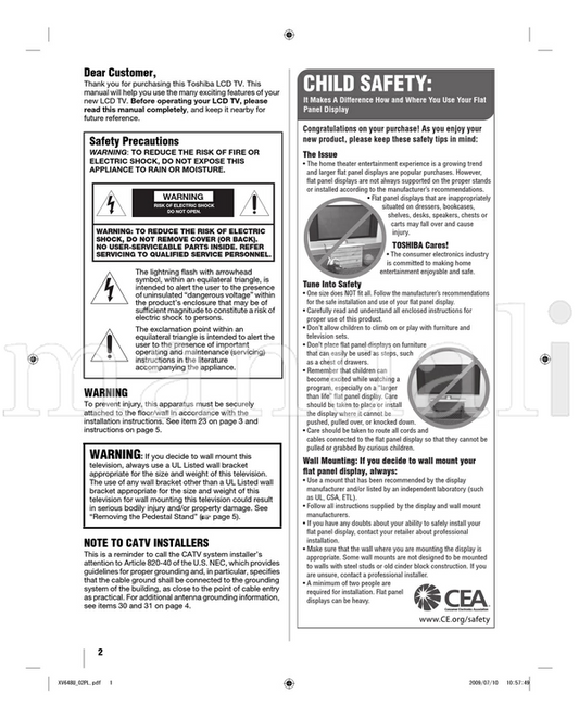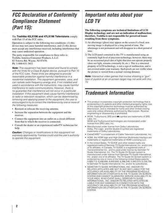 Toshiba 42HL196 42LX196 47LX196 TV Operating Manual