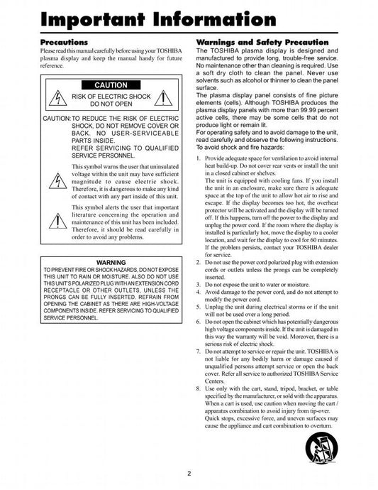 Toshiba 50HMX96 56HMX96 TV Operating Manual