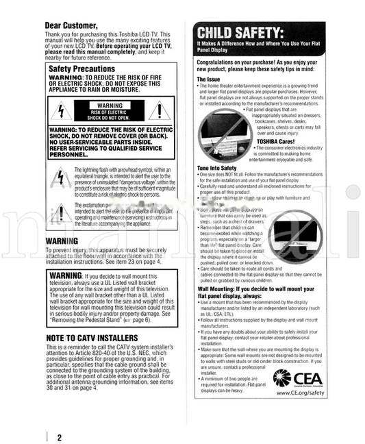 Toshiba 50A60 50A60A 55A60 TV Operating Manual