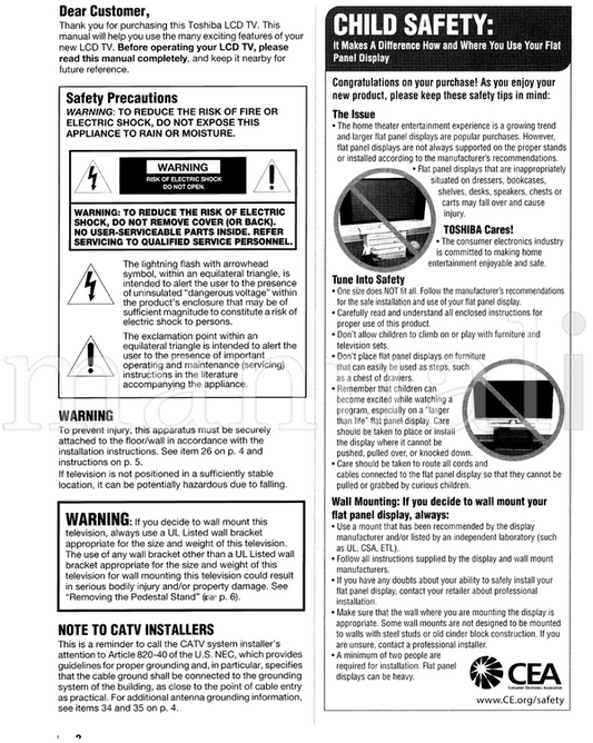Toshiba 46HMX85 52HMX85 62HMX85 TV Operating Manual