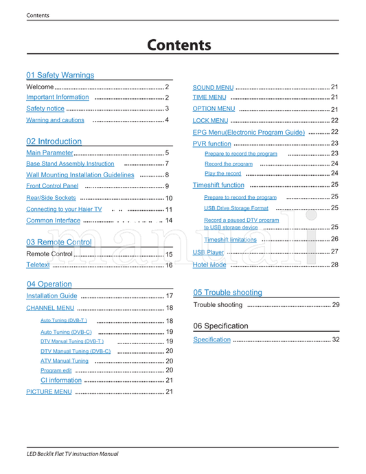 Haier LE26B13200 LE32B13200 (19 pages) TV Operating Manual