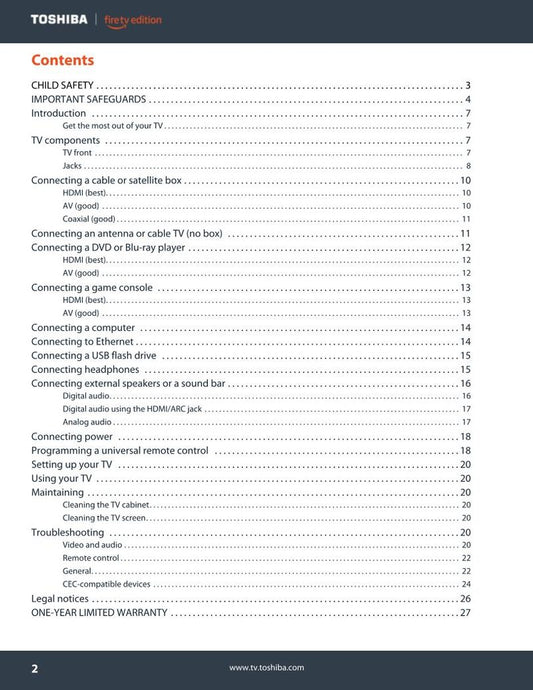 Toshiba 50L711M18 50L711U18 55L711M18 TV Operating Manual