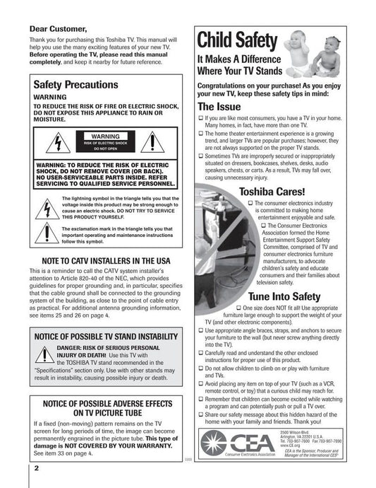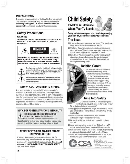 Toshiba 52HMX94 62HMX94 TV Operating Manual