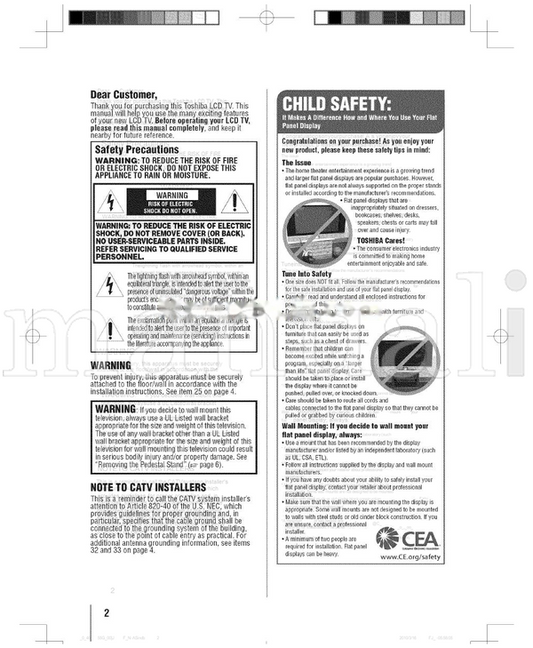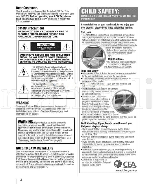 Toshiba 50L3400 TV Operating Manual