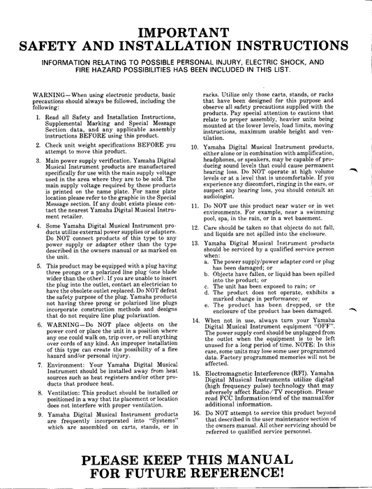 Yamaha TX16W Digital Wave Filtering Sampler Owner/ User Manual (Pages: 44)