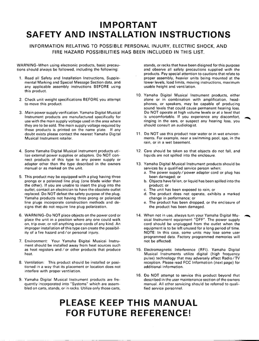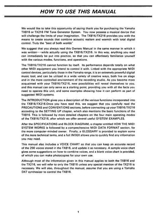 Yamaha TX216 & TX816 FM Tone Generator Owner/ User Manual (Pages: 79)