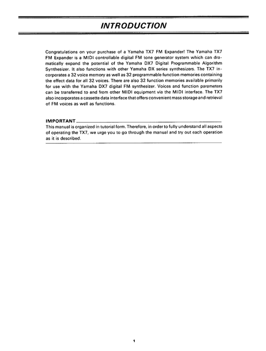 Yamaha TX7 Tone Generator Owner/ User Manual (Pages: 48)