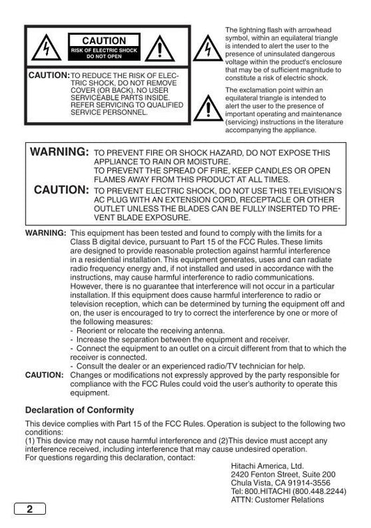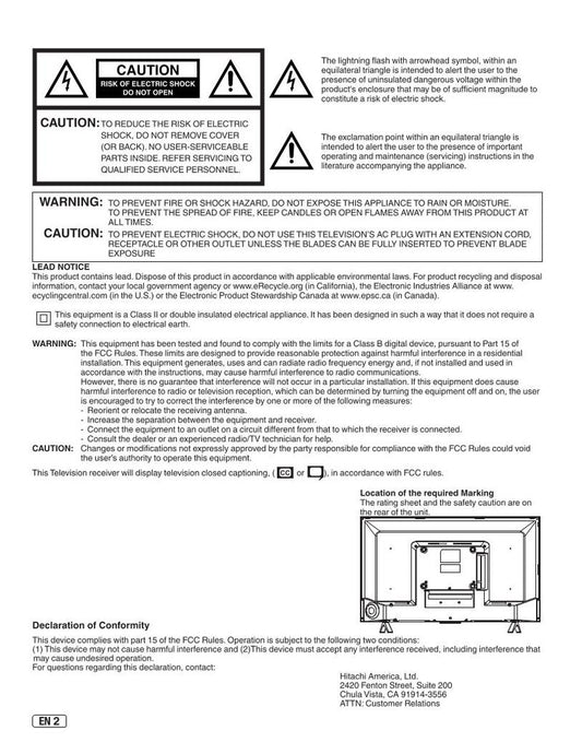 Hitachi LE19S304 LE19S314 (27 pages) TV Operating Manual