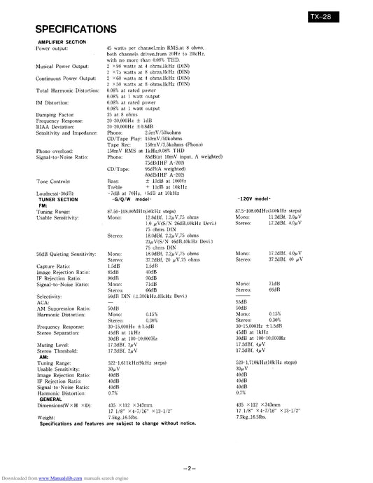 Onkyo TX-28 Synthesized Tuner Amplifier Service Manual (Pages: 28)