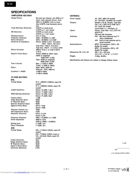 Onkyo TX-61 Synthesized Tuner Amplifier Service Manual (Pages: 33)