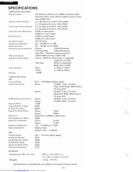 Onkyo TX-7430 Synthesized Tuner Amplifier Service Manual (Pages: 34)