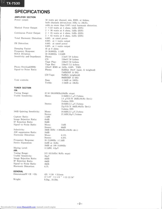 Onkyo TX-7530 Synthesized Tuner Amplifier Service Manual (Pages: 35)