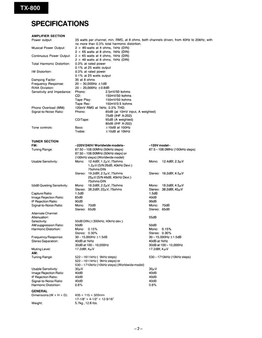 Onkyo TX-800 Synthesized Tuner Amplifier Service Manual (Pages: 20)