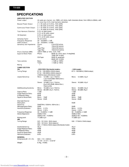 Onkyo TX-820 Synthesized Tuner Amplifier Service Manual (Pages: 21)