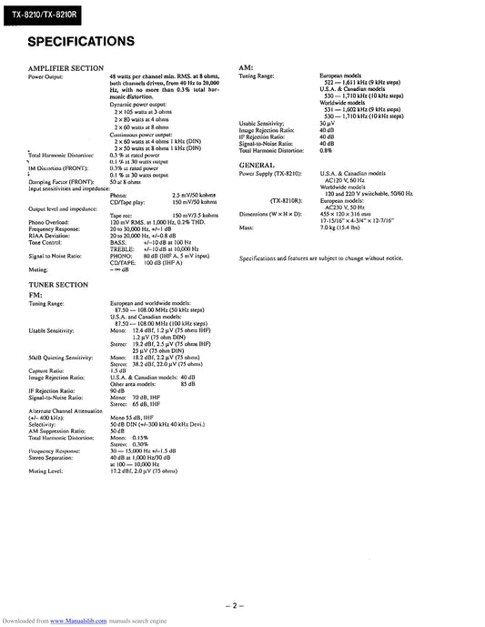 Onkyo TX-8210 & TX-8210R Synthesized Tuner Amplifier Service Manual (Pages: 24)