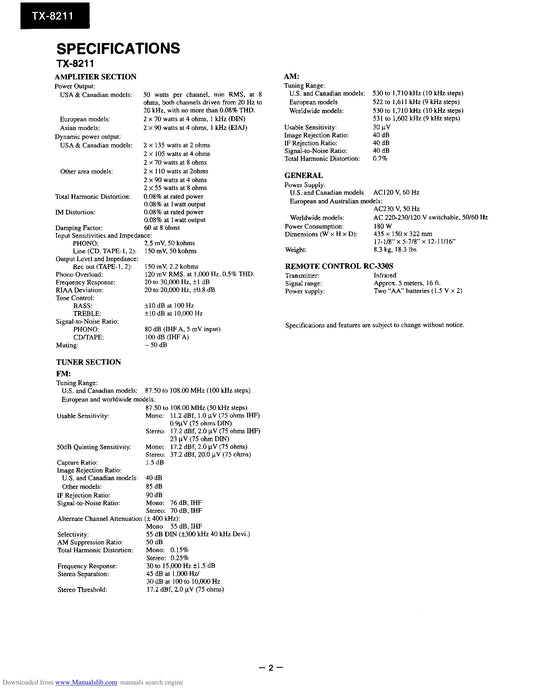 Onkyo TX-8211 Synthesized Tuner Amplifier Service Manual (Pages: 21)