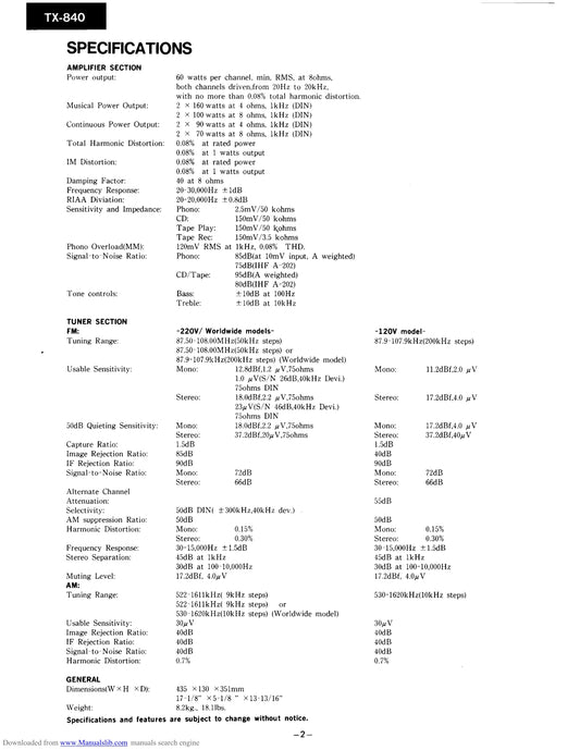 Onkyo TX-840 & TX-840M Synthesized Tuner Amplifier Service Manual (Pages: 23)