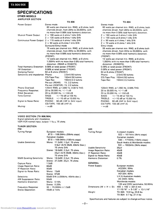 Onkyo TX-904 & TX-906 Synthesized Tuner Amplifier Service Manual (Pages: 54)