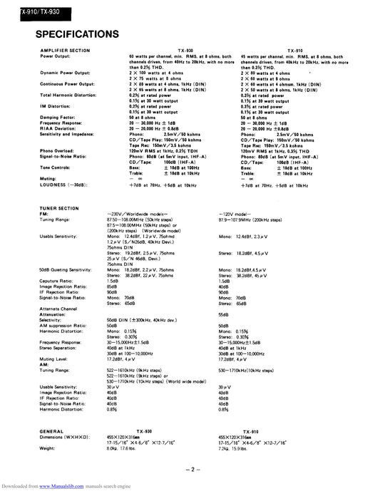 Onkyo TX-910 & TX-930 Synthesized Tuner Amplifier Service Manual (Pages: 31)