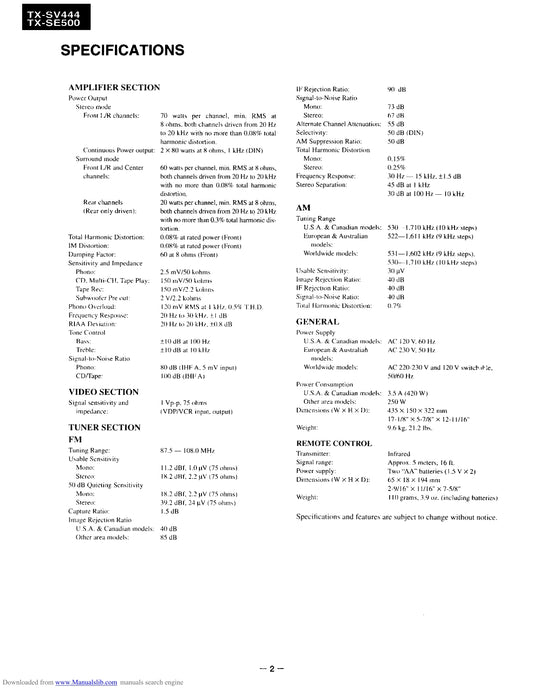 Onkyo TX-SE500 & TX-SV444 Synthesized Tuner Amplifier Service Manual (Pages: 23)