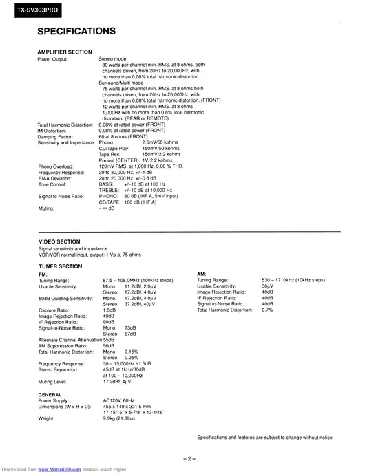Onkyo TX-SV303PRO Synthesized Tuner Amplifier Service Manual (Pages: 33)