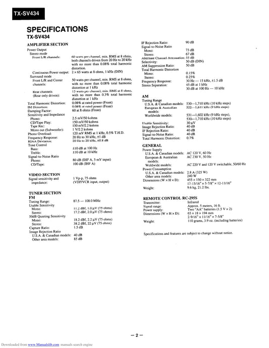 Onkyo TX-SV434 Synthesized Tuner Amplifier Service Manual (Pages: 20)