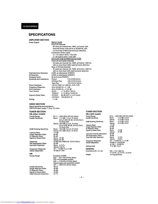 Onkyo TX-SV515PROII Synthesized Tuner Amplifier Service Manual (Pages: 24)