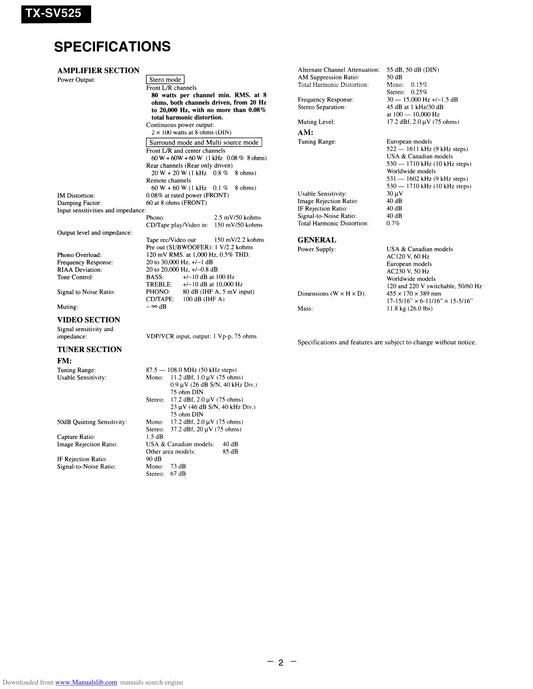 Onkyo TX-SV525 & TX-SV525R AV Control Tuner Amplifier Service Manual (Pages: 37)