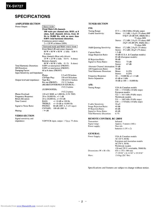 Onkyo TX-SV727 & TX-SV727R AV Control Tuner Amplifier Service Manual (Pages: 29)