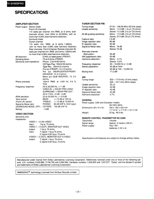 Onkyo TX-SV909PRO AV Control Tuner Amplifier Service Manual (Pages: 37)