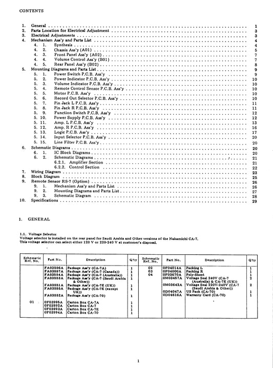 Nakamichi CA-7, CA-7A, CA-7E & CA-70 Control Amplifier Service Manual (Pages: 35)