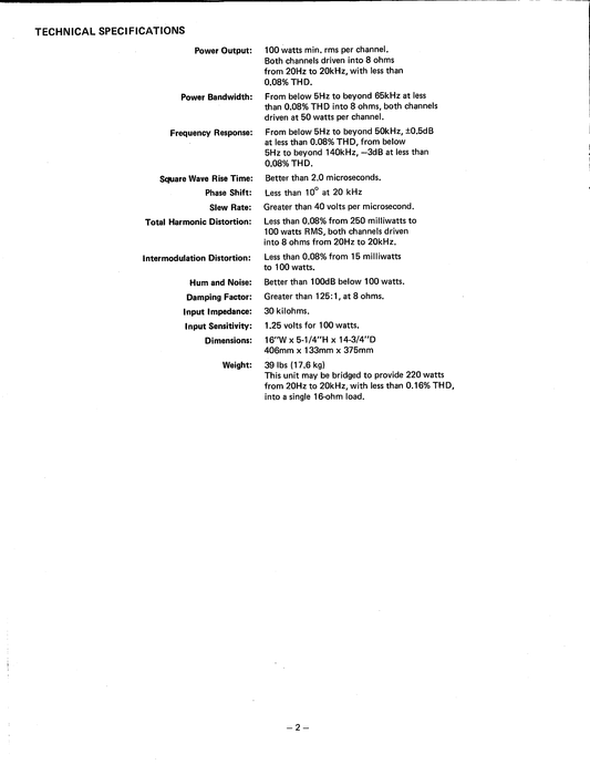 Harman/ Kardon Citation II Stereophonic Amplifier Owner & Service Manual (Pages: 73)